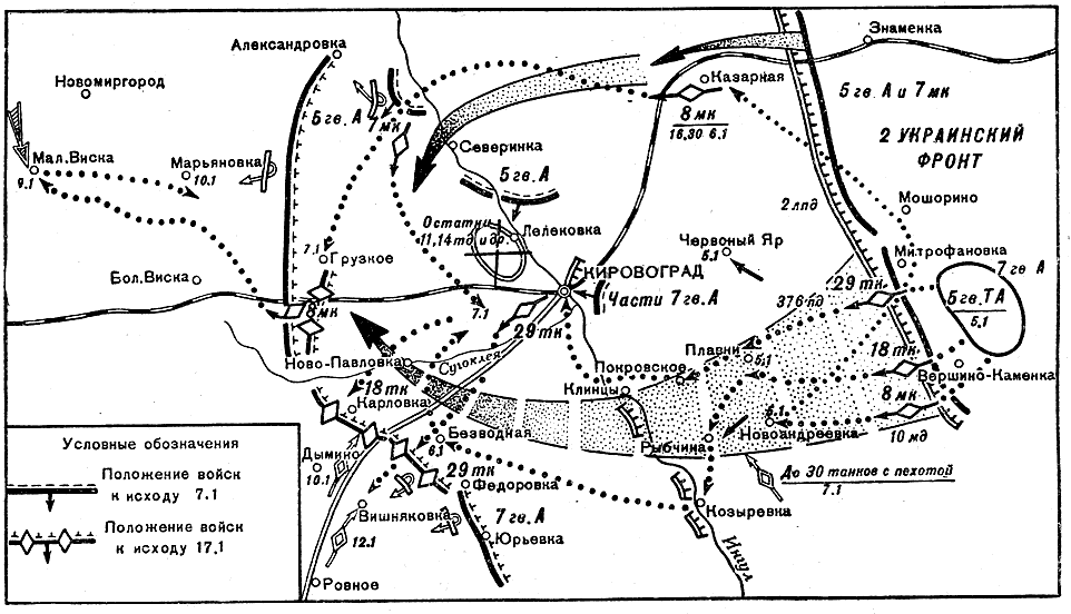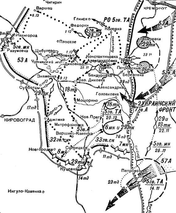 що розпочалися 17 грудня 1943 року було сказано: «на кіровоградському напрямку на одній з ділянок два полки піхоти і 70