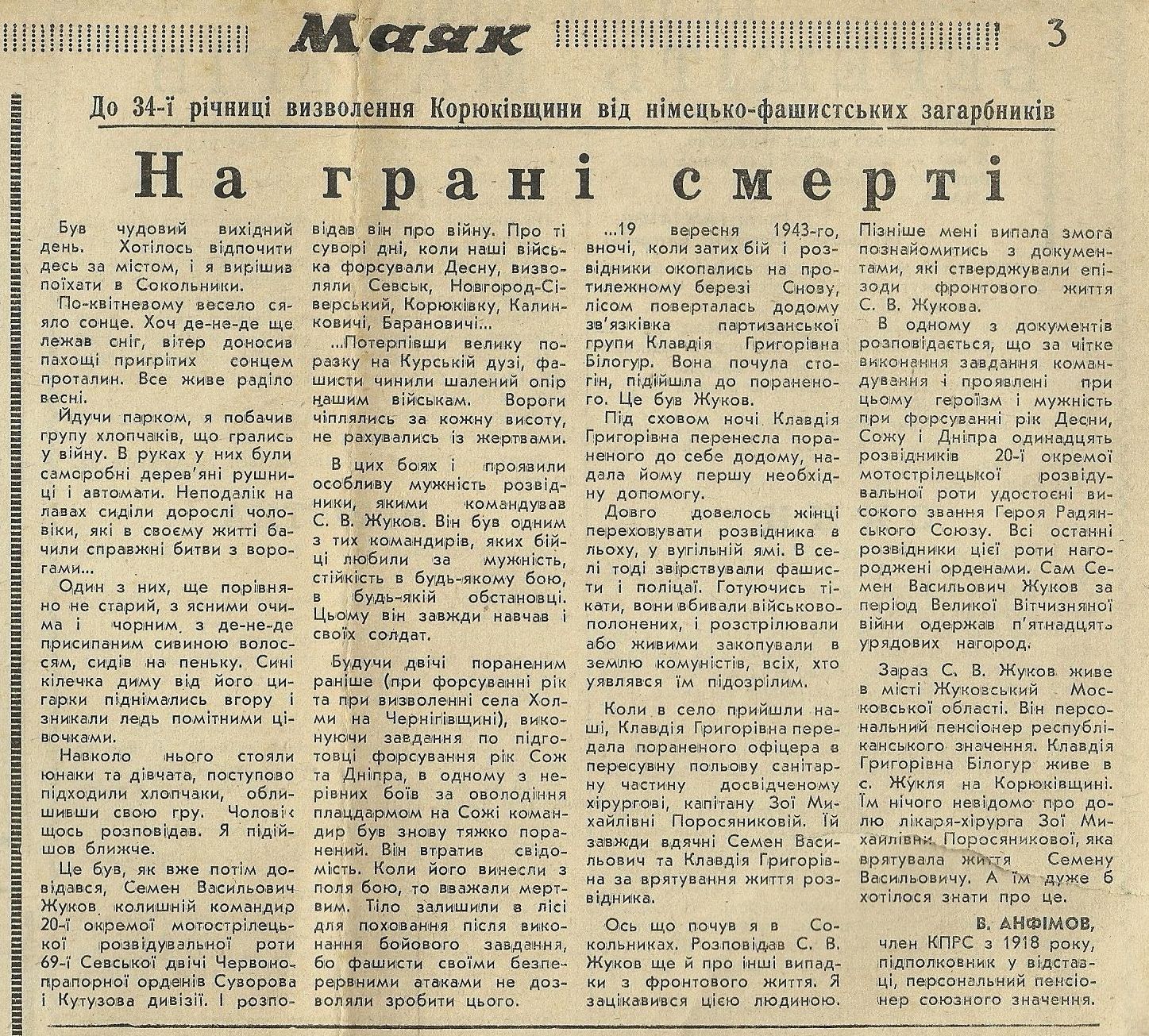 вийшла стаття про зустріч з Семеном Васильовичем Жуковим. Автор В. Анфімов