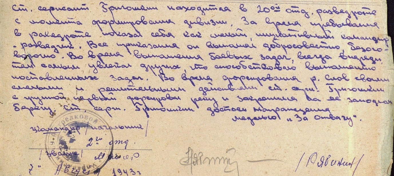 1943 року, а одно з попередніх бойових завдань, серед відзначених у нагородному