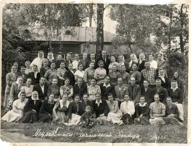У зв'язку з реформою територіального поділу 1960-го року відбулося реформування і в медицині району. Через зміну підпорядкування лікарні частина медпрацівників переводилася до інших лікувальних закладів. До обласної лікарні був направлений на роботу Рубець Анатолій Васильович та інші. Разом з новим головним лікарем Мартишко Володимиром Васильовичем колектив лікарні вирішив сфотографуватися на згадку про часи їх спільної роботи у Холминській районній лікарні.