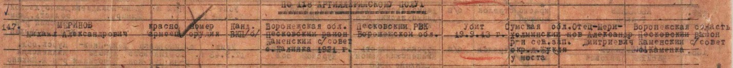 районі Кістра. Загинув гарматний номер Мерінов Михайло Олександрович і